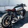 Speaking of the seat, the pan is a WMD fibreglass unit, and it has been upholstered in black Alcantara with blue diamond stitching. To go with the seat, other items on the bike were given a fresh coat of Henry Ford’s finest. This includes the subframe, swingarm, finned engine caps, kickstand, heel guards, engine covers, brake pedal and gear lever.