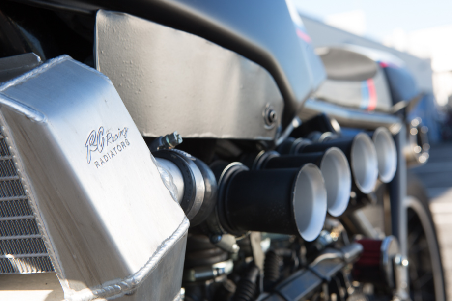 While losing weight is a sure way to improve performance Giorgio wasn’t satisfied with the BMWs factory 100 horses. To free up the inline fours breathing he swapped the airbox for a quartet of velocity stacks. At the outward end of the combustion cycle, a beautifully constructed 4-into-1 SeS factory exhaust spews waste gases from beneath the tail. Keeping temperatures in check is an RC Racing alloy radiator and a programmable Eprom ECU makes the most out of his performance modifications.