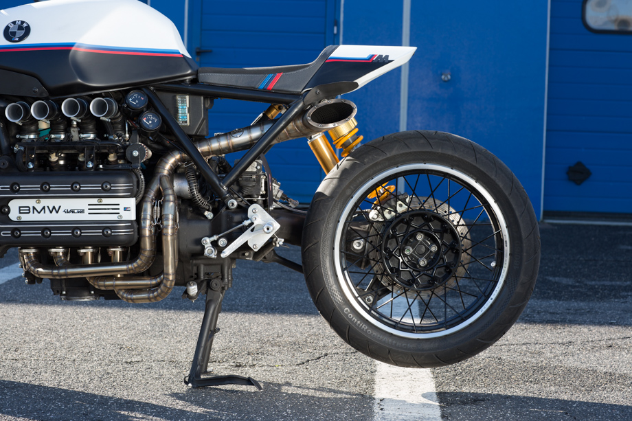 While slicks may seem a more suitable selection for a track destined build Giorgio has every intention of riding this beast on the streets. His K1100 cafe racer may not provide the comfort of a tourer or the convenience (?) of an electronically adjustable windscreen, but who needs all that stuff when your focus is going fast!