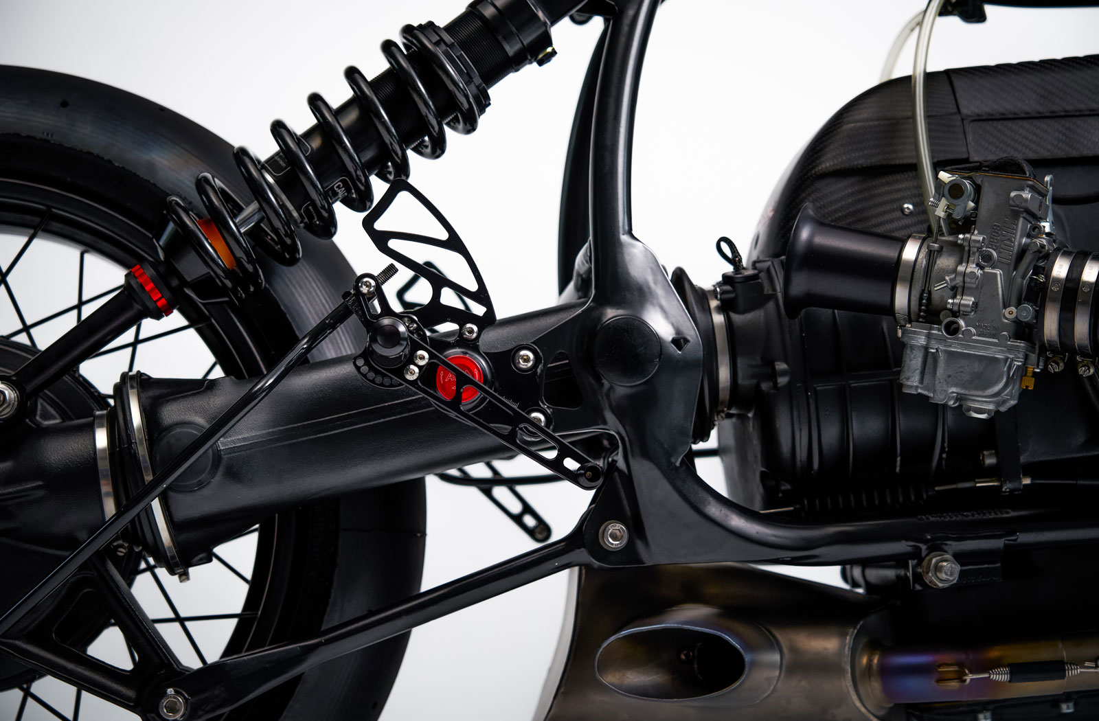 Of course, the MK Race isn’t just about looks. Underneath its sleek exterior lies a highly modified engine tuned for the track. Starting with a 1070cc big bore kit, the MK Race is packing race pistons, cylinders, and Formula 1-grade coatings for steadfast durability and reduced friction. In addition, hidden beneath the engine casings are a balanced race crank and ported heads. The Mikuni carburetors hung off each cylinder wear velocity stack intakes and have been tuned in collaboration with carburetor specialist Stephen Topham to ensure the engine breathes freely. At the opposite end of the combustion cycle sits a custom-engineered Diamond Signature full titanium exhaust that weighs a mere 3.14kg and was developed with input from Formula 1 engineers.