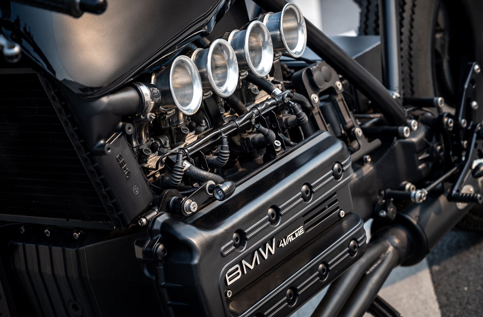Black clearly played a big role in this build, as it does on most K-Speed projects. Everything on the bike has either been resprayed in black or was chosen due to its black finish. As you’d expect many of the parts found in the Diablo catalogue are available in a black finish. So this BMW wears a black Diablo muffler, LED turn signals, fluid reservoirs and grips to name just a few.