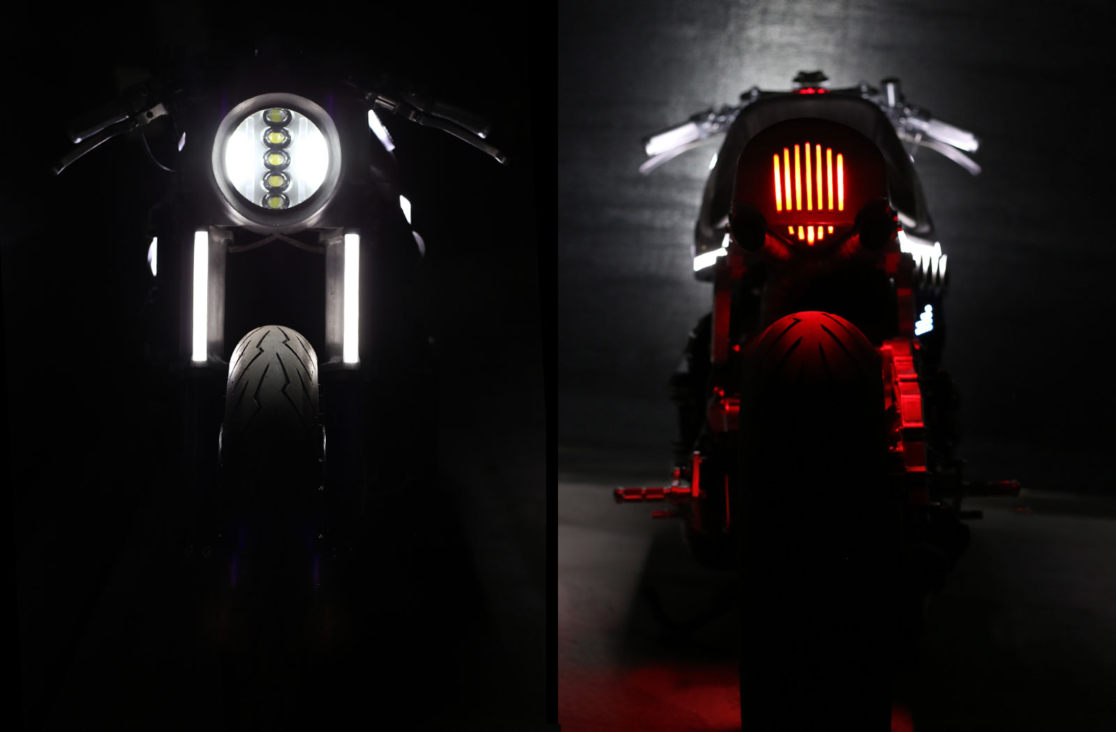 “I wanted to push my fabrication abilities all while adding a few details that I’ve never really seen on a bike,” he says. “I knew I wanted to introduce some LEDs and acrylic panels. Having the bike transform at night was always a goal.”