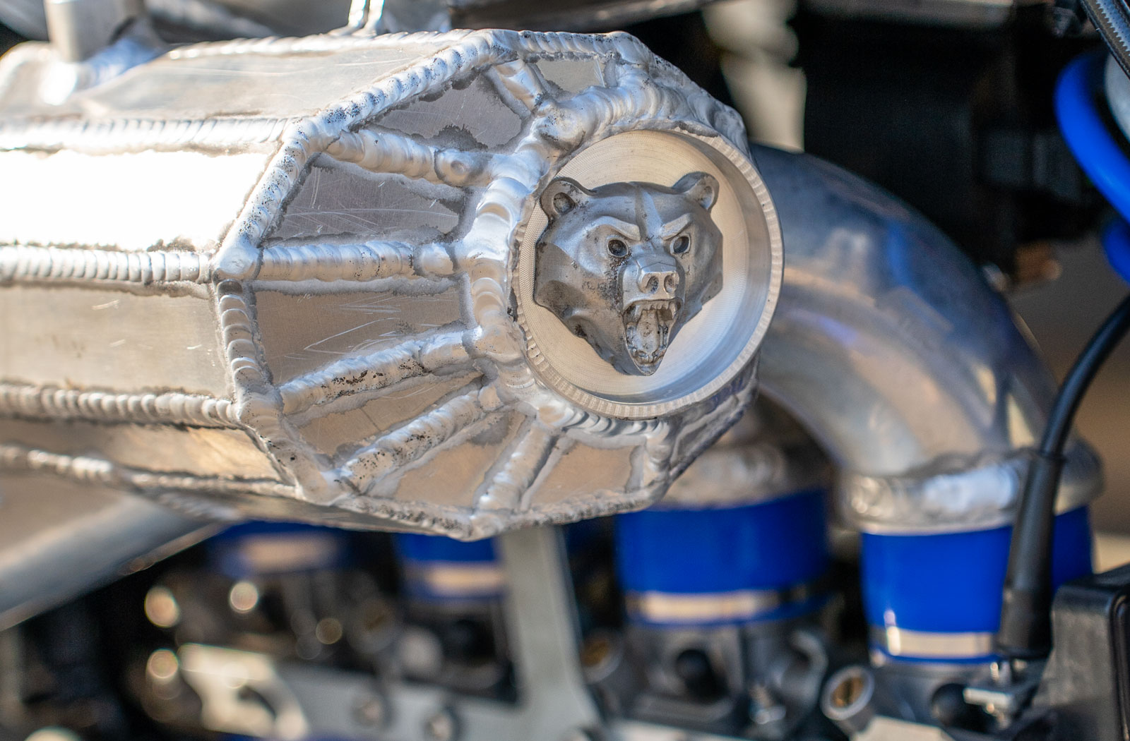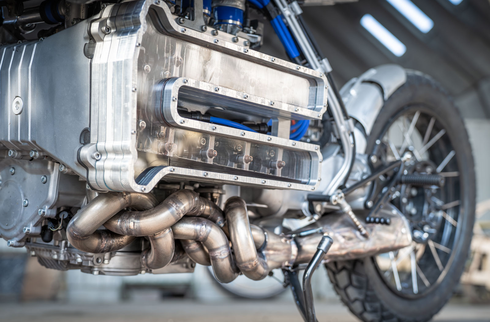 The list of custom-made components is, as you’d expect long, but some standouts warrant explanation. The fuel tank is anything but standard. The tessellated design was first mocked up using cardboard. Vytautas then spent a month cutting the pieces with a jig saw from 2mm aluminum plate. These then went to Mindaugas who painstakingly welded everything together. A similar approach was used to build the tentacle-like 4-into-1 exhaust which has been paired with a larger intake and free-flowing K&N filter.