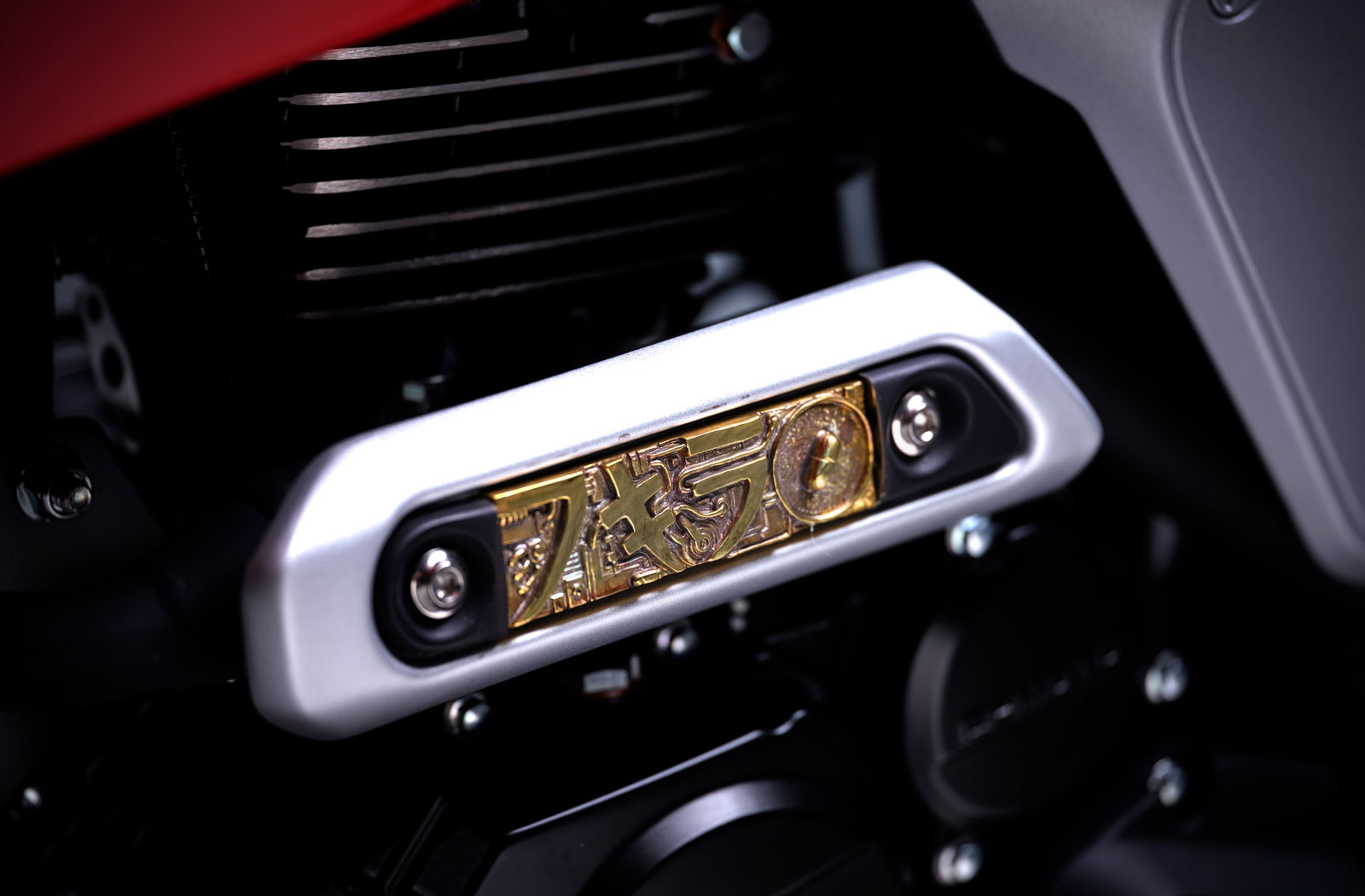 To complete the look the Papio Racer is covered in bold red paint matched to the Anime bike and the bodywork is covered in decals styled directly from Kaneda’s motorcycle. Additional custom tweaks come in the form of a set of Vans grips, blade mirrors, and the relocation of the turn signals to keep it street-legal. Finally, 13 Lucky Monkey has added a selection of custom-made badges and even created a custom ignition key. The brass badges on the tank and bodywork were created in their trademark style and were inspired by visuals from Akira.