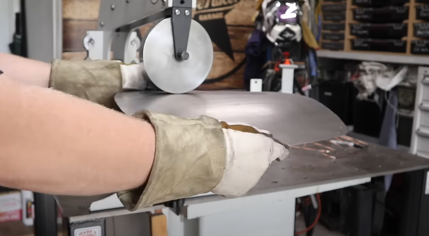 Power tools make fabrication quicker and more consistent. A power hammer and pneumatic planishing hammer speed up shaping, while a shrinker-stretcher helps form tight curves. For cutting, a CNC cutting robot, jigsaw, or hand saw with a metal blade all work—only the cutting time changes.