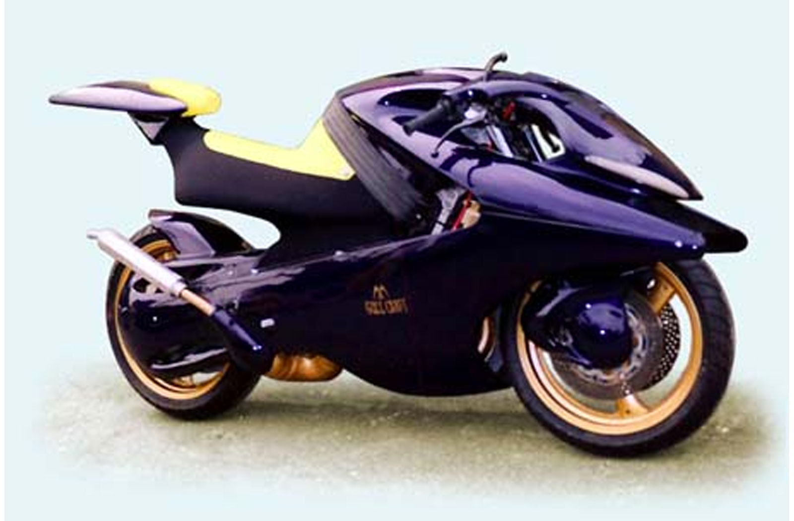 The ID2000 was based on a Suzuki RGV250 platform but due to the extensive use of FRP, the bike was virtually unrecognisable. It wore bodywork that encompassed the entire chassis, engine and front end, featured futuristic-looking aerodynamically focused curves and a unique floating rear subframe design. At the time of its unveiling, it was unlike anything else on display at the show. As you’d expect it gained Kengo and his brother, and more importantly their Gull Craft brand, a lot of attention.