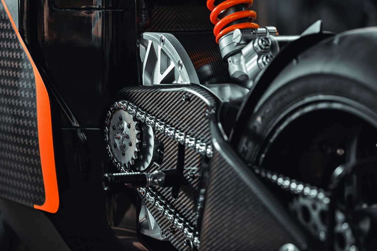 Battery weight and range are the two biggest issues for all-electric vehicles. Saroléa has addressed both through the use of special materials and track proven research. To keep things in an acceptable weight range the N60 body is constructed almost entirely from carbon fibre. This includes the bikes monocoque body and swingarm. If excessive use of carbon wasn’t enough Saroléa have also utilised both aluminium and titanium fasteners to hold the bike together. Accessories such as indicators and footpegs are aluminium too and supplied by Rizoma. The result is a motorcycle that tips the scales at 215kg which is about 7kg less than the BMW R nine T.