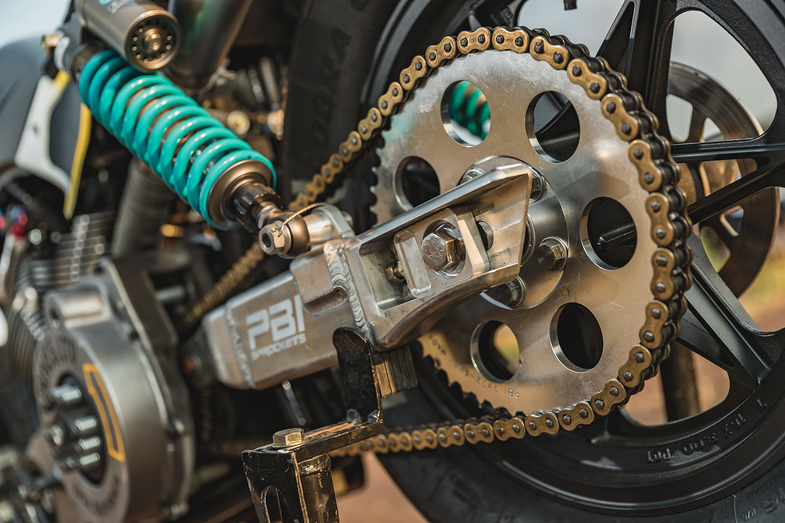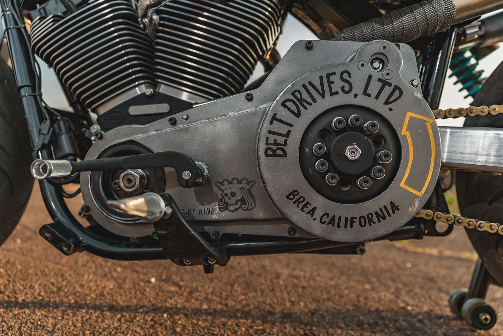 The job of delivering all that additional power to the rear wheel was then tasked to a Belt Drives Ltd. clutch and chain conversion.