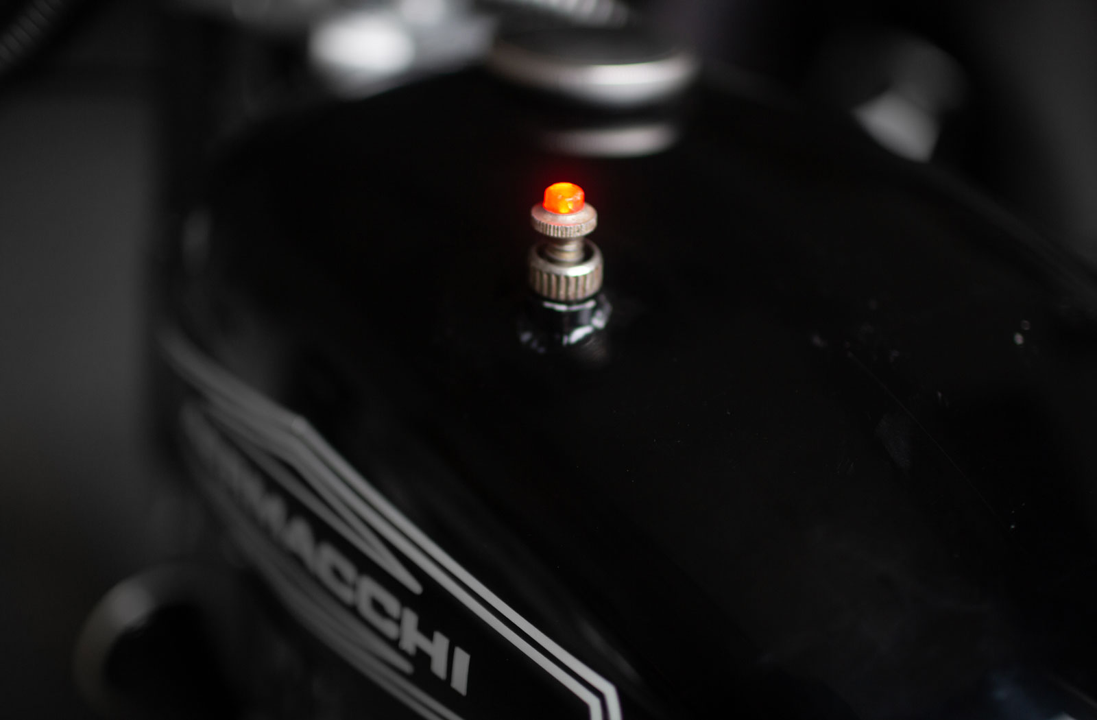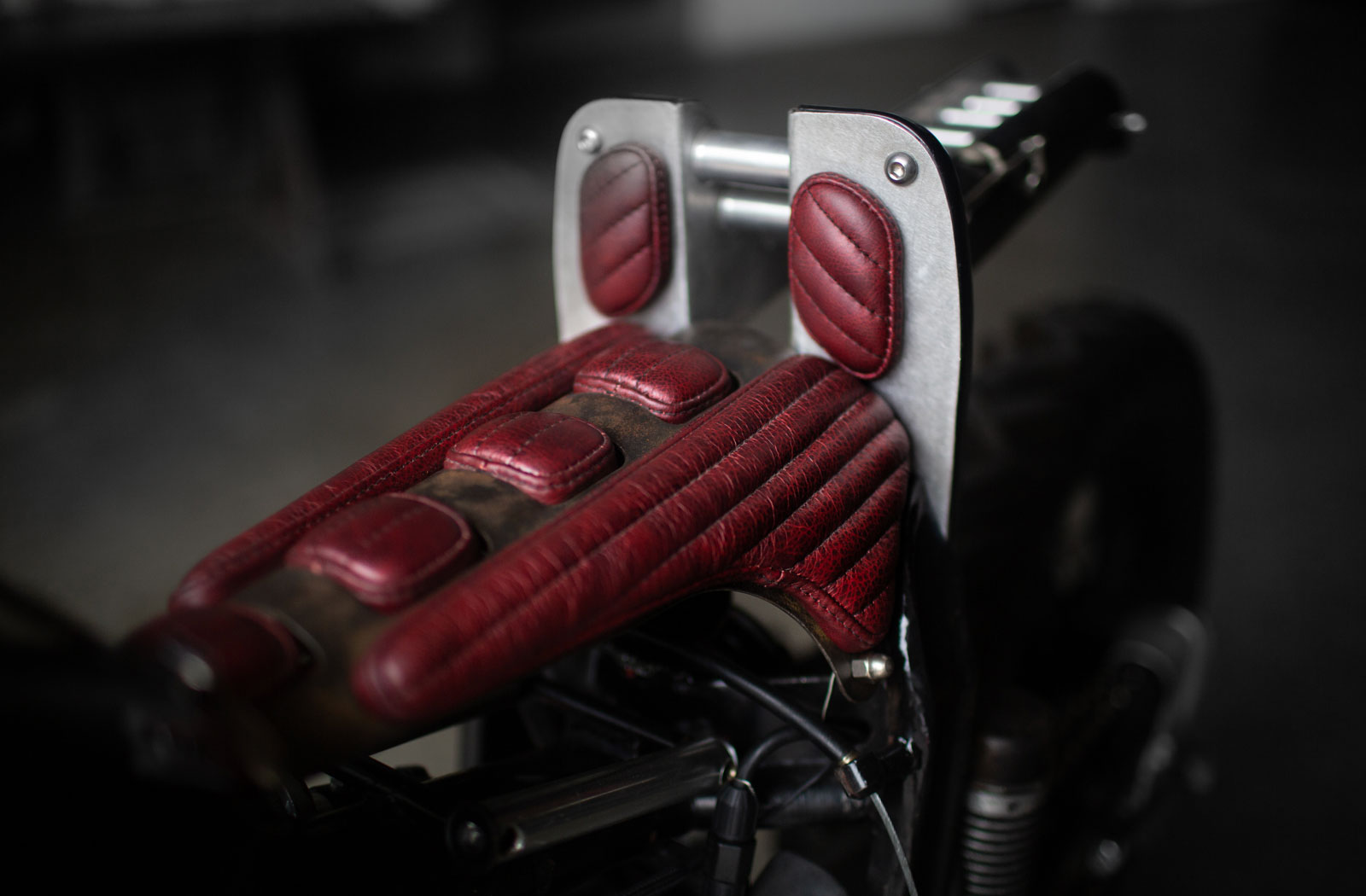 “The lighting is definitely one of J’s favourite parts of this series,” explains Gretchen. “Each bike has its batteries built into the gas tank, and wiring running down the frame and under the seats. All the wiring near the exhaust is Teflon coated.”