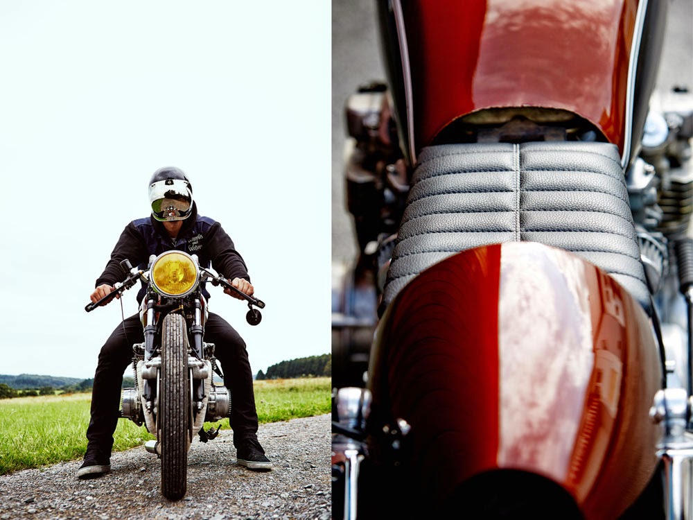 “My name is Nils J. Ksienzyk and I’m a 28 year old bike builder from Germany. From the age of 15 up to 24 I’ve owned several bikes from 50cc to 1050cc. I’ve always changed parts to give them my own style, but began feeling like bolting on parts was boring and fake. I decided to sell my bike and go for something older. Then I bought a busted up Honda CB550. It was in bad condition. I wanted to see if I was able to repair the Honda and make it my own.”