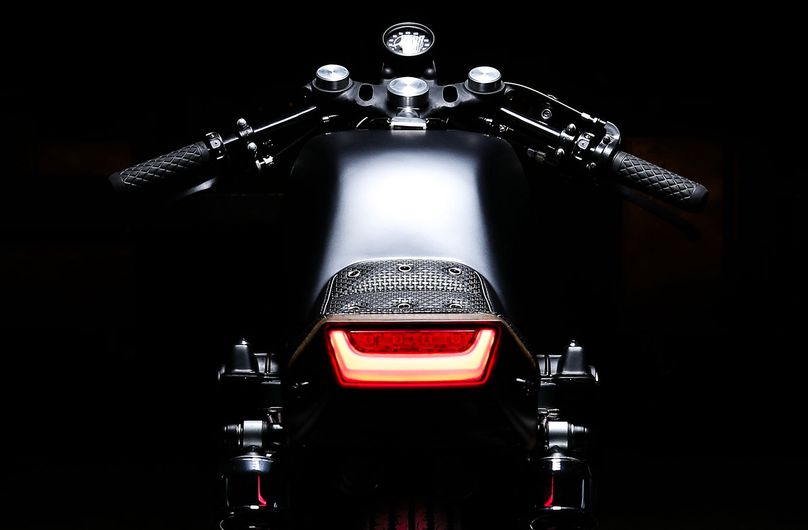 Adding to the visual impact of the wooden rear end is Žiga’s choice of colour palette. The satin black scheme by Matej Mrzlikar is broken up by subtle touches of brushed aluminium but the oak tail is the real eye candy. Finally, a riveted black leather seat by Mitja Bizjak adds a touch of old-school hot rod style that is perfectly suited to this brash build.