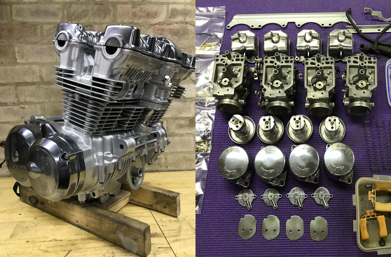 Setting the valve shims clearances was quite a pain as it was very fiddly. A full strip down, clean and rebuild of the carburettors was next and man what a job that was! I decided to stick with the stock airbox as the standard carbs are already quite sensitive and difficult to get running right. Some of the aluminium engine parts were sanded back and polished. Others deburred and repainted.