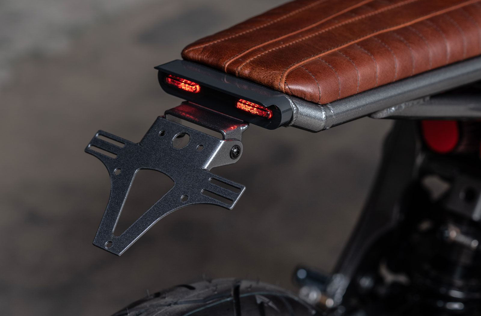 Over a period of 24 months, the GL500 came together as a side project at Ironwood HQ. Along with upgrading many of its components with modern alternatives, Ironwood fabricated several components to realise its concept. The most prominent of those is the sharp, angular subframe. Thanks to the GL’s mono-shock design the tail hovers over the rear wheel which is somewhat of a signature feature of Ironwood projects. The entire assembly is bespoke with LED lighting and a tidy license plate bracket integrated into the design. At the front end, you’ll also find a custom-made fender and bracket and to allow the fitment of a new front end, there’s a custom-made billet top tree.