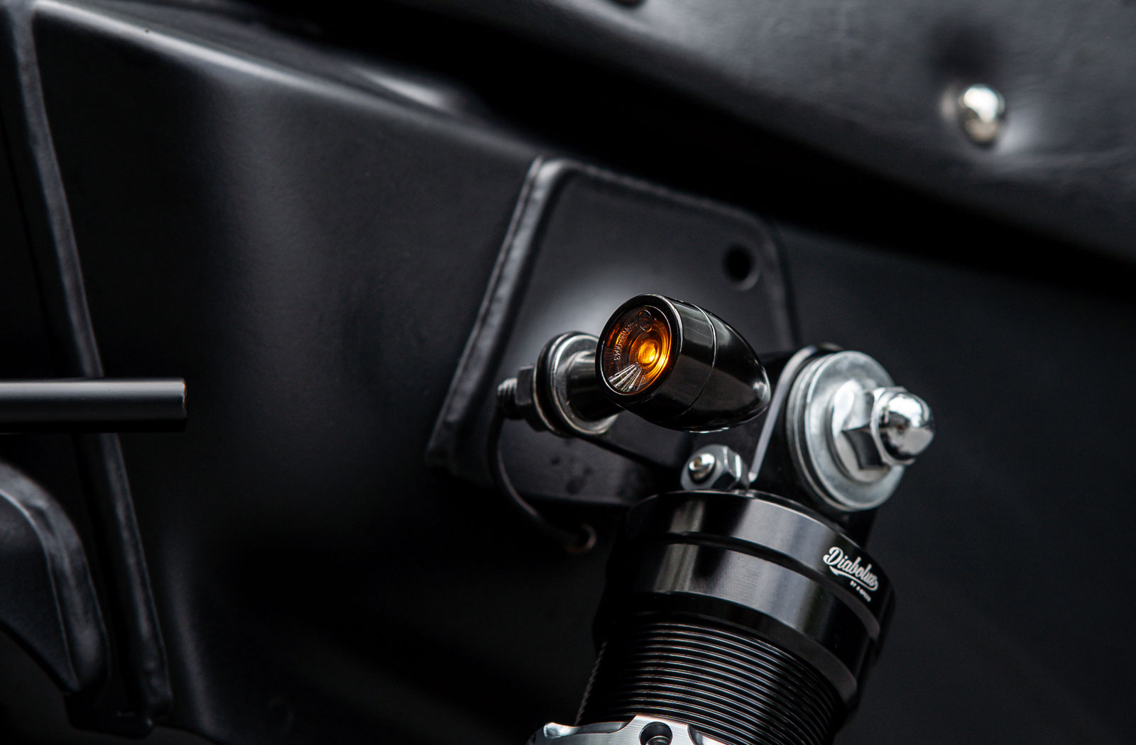 Accompanying the fairing on the laundry list of custom tweaks is a custom-made handlebar sporting new switchgear, grips, and bar ends. Rear set footpegs mounted to the swingarm establish an aggressive riding position while the studded leather Diabolus seat offers plenty of padding. To keep things looking clean in the cockpit, the stock gauge has been relocated to the inner left of the fairing where you will also find a rather unexpected addition.