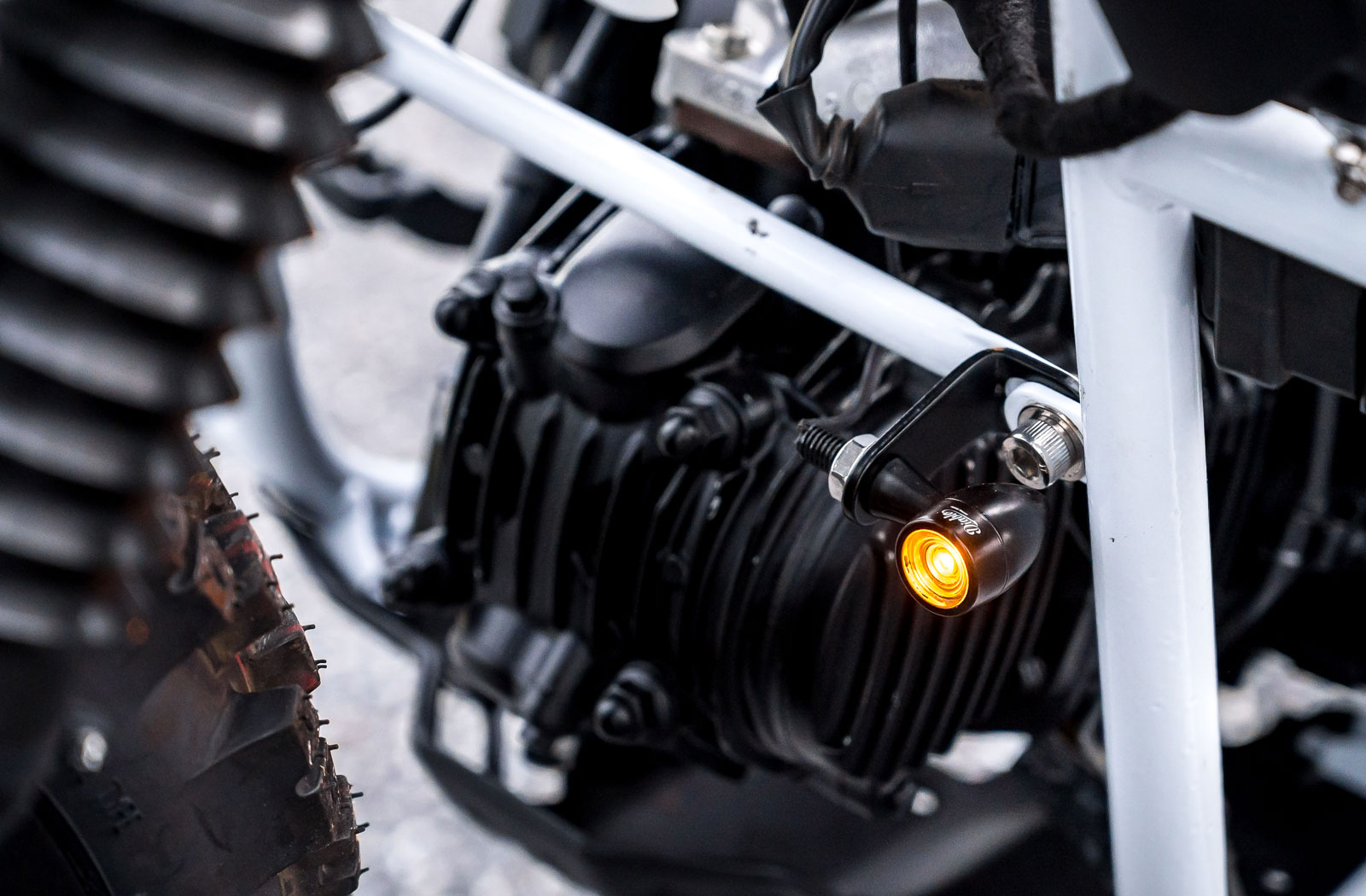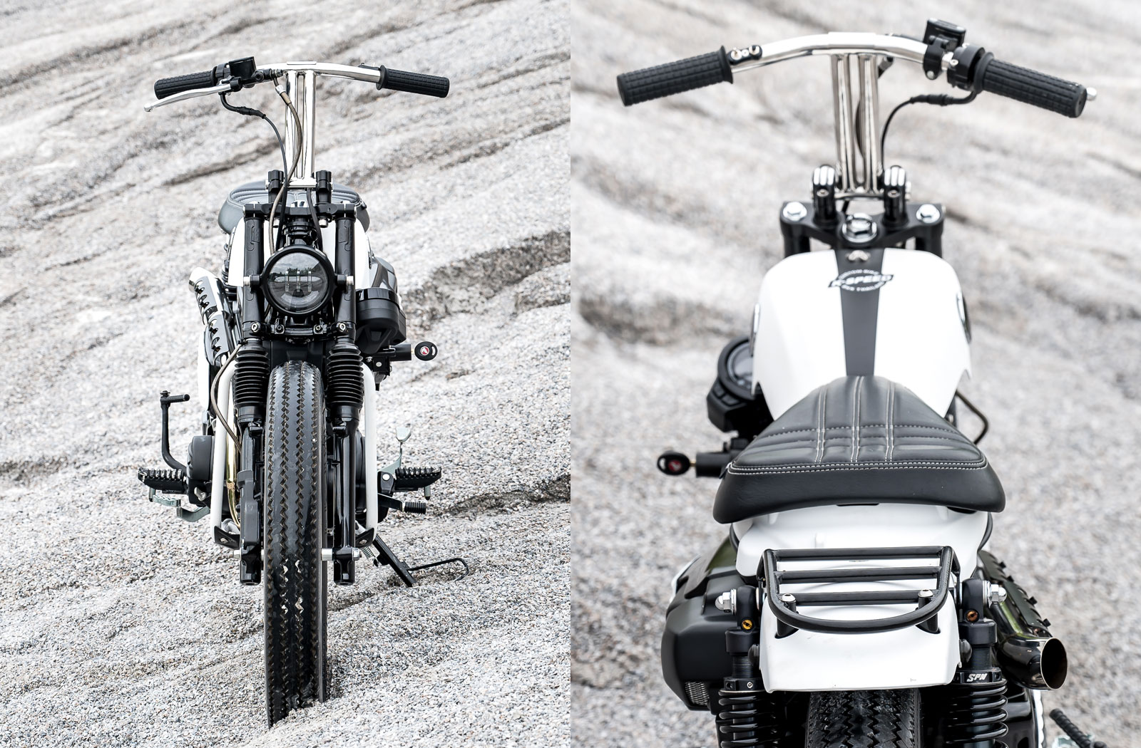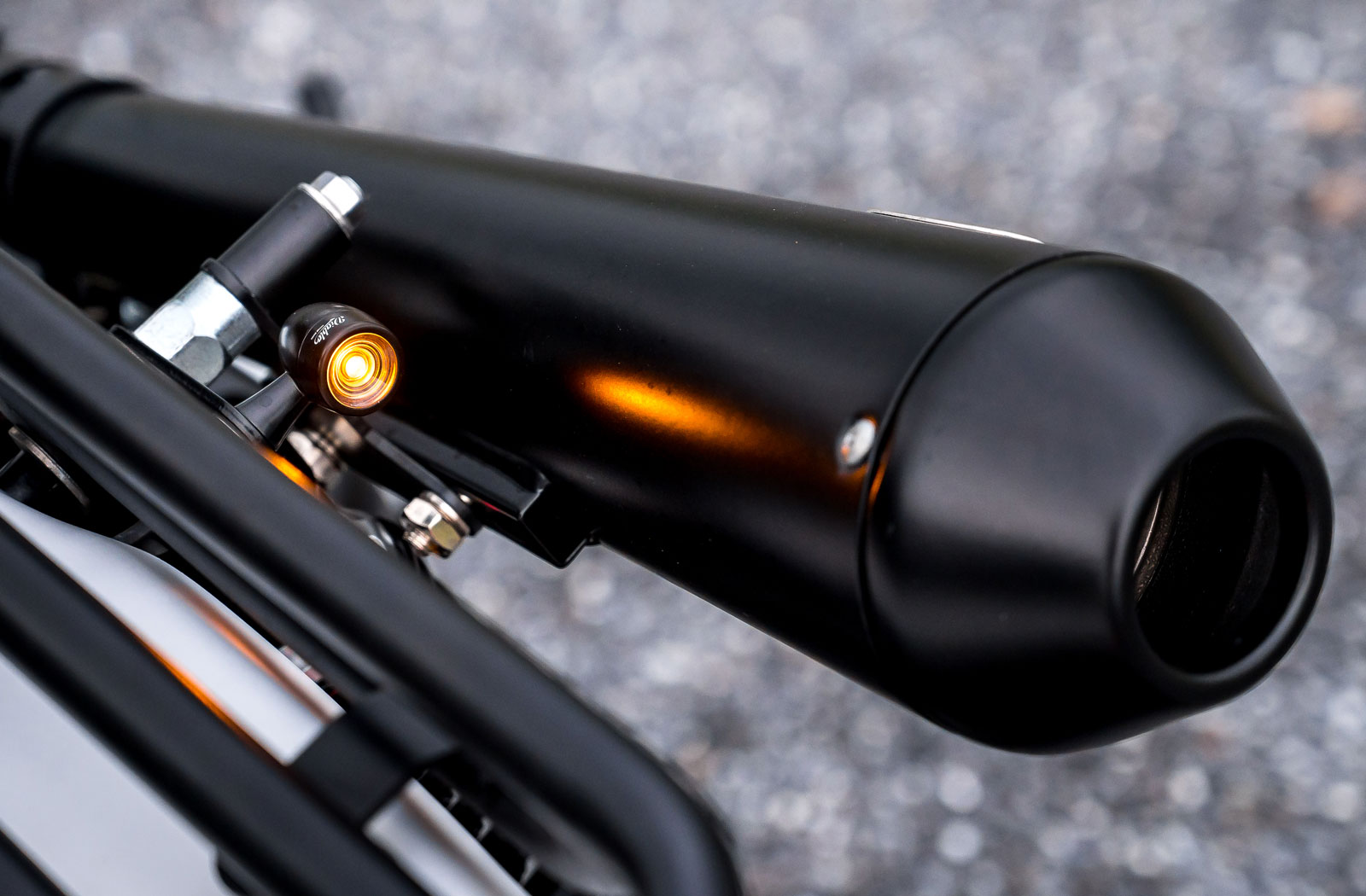 The finishing touches on the Road Runner came in the form of a gold chain, white painted engine frame rails, discreet smoked lens LED indicators and a custom made stainless slash-cut exhaust.