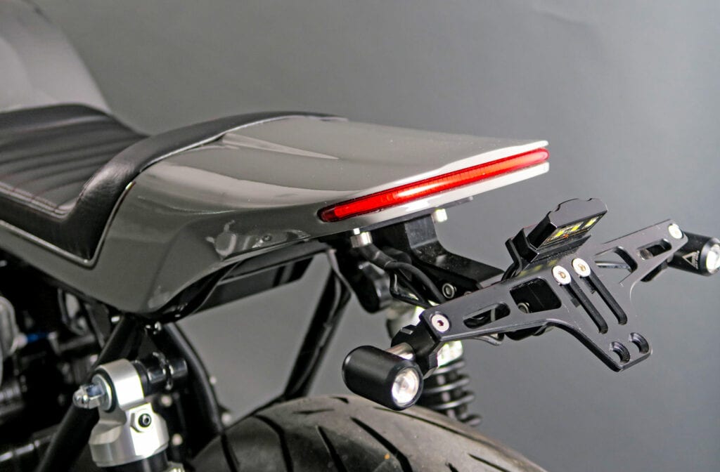 “Honda’s DOHC series requires extensive work to the subframe when building these bikes. We took the opportunity to make the tail loop a little different from what we normally see. In addition, we have added an electrical box that can accommodate the regulator, the battery and a Motogadget M-Unit Blue module.”