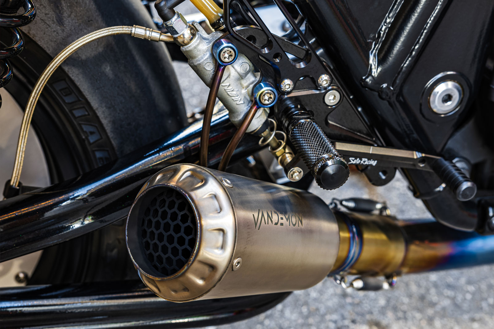 To ensure hassle-free operation for years to come, the electronics are now powered by a Motogadget M-unit Blue that’s been paired with a Motogadget Motoscope Classic Speedometer. The use of an Antigravity battery sheds a few pounds and has been cleverly tucked underneath the fuel tank, leaving the rear of the frame clutter-free. Custom 17-inch wheels wrapped in Pirelli Diablo slicks round out the changes, but rest assured they’ll be swapped out for a more practical tread in the future.