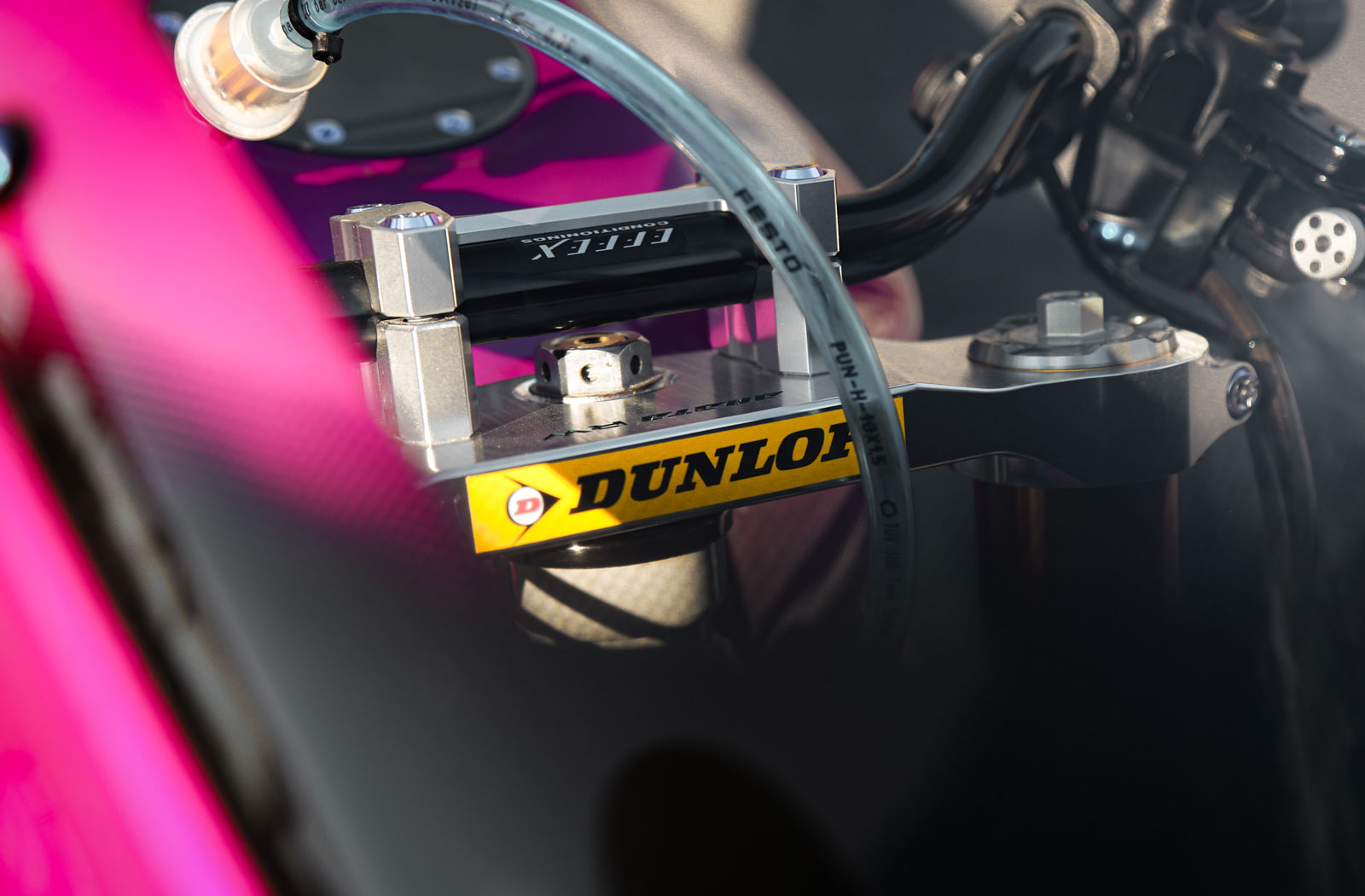 The pièce de résistance however is the paintwork which Daiken reports took the longest of all the work completed. His ZRX’s new livery is a dead ringer for the 1998 Nijoma NJ-1 scheme. The bike is now sporting the same pinstriping theme and similar decal placement but the big difference is the colour. Rather than matching Nijoma’s blue-silver palette Daiken went with one of his favourites, an outlandish pink-purple magenta. Like the bright green of the ZXR Eddie Lawson Replica, it’s a colour that’s not going to be to everyone’s liking, but it demands attention and attention is exactly what this bike deserves.