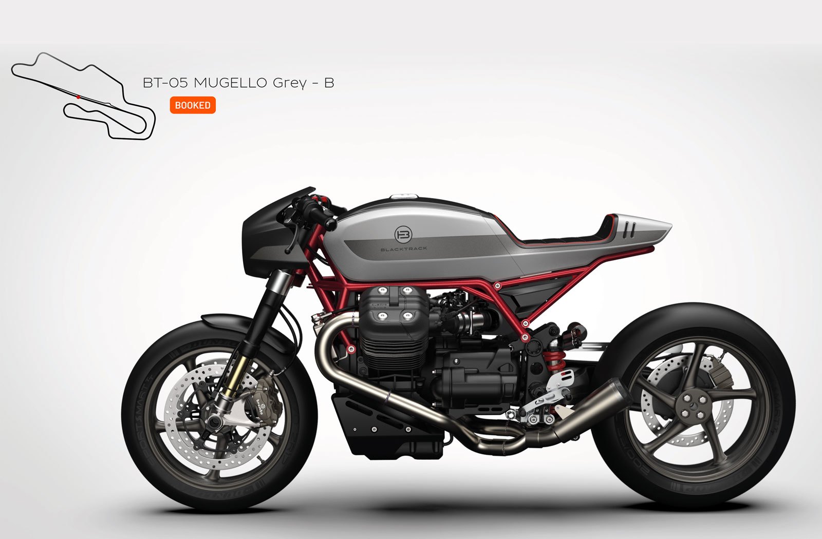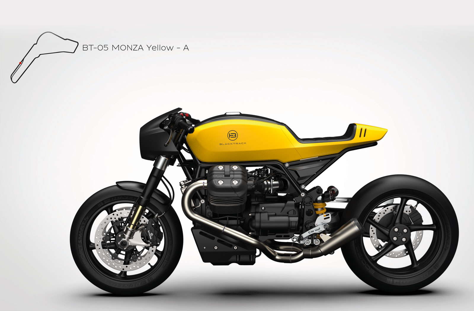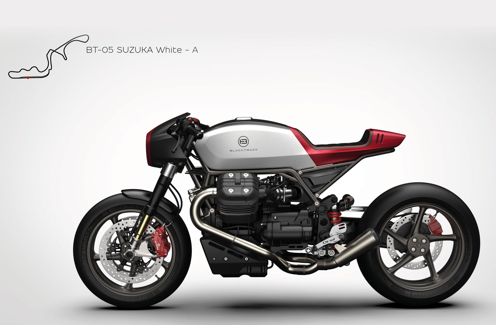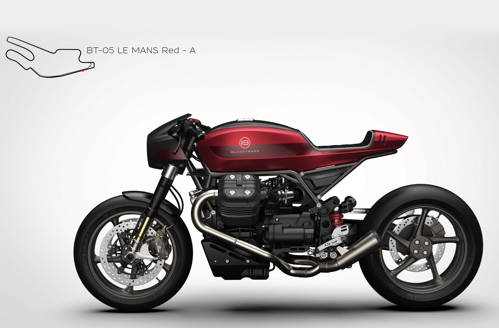 “Stripping down a stock Moto Guzzi and simply creating a new style wasn’t enough,” explains Sacha. “With the BT-05 we went one step further by making it completely track-oriented. All components are selected with these goals in mind: achieving as low a weight as possible, increasing power and torque figures, and making the BT-05 an absolute thrill to ride.”