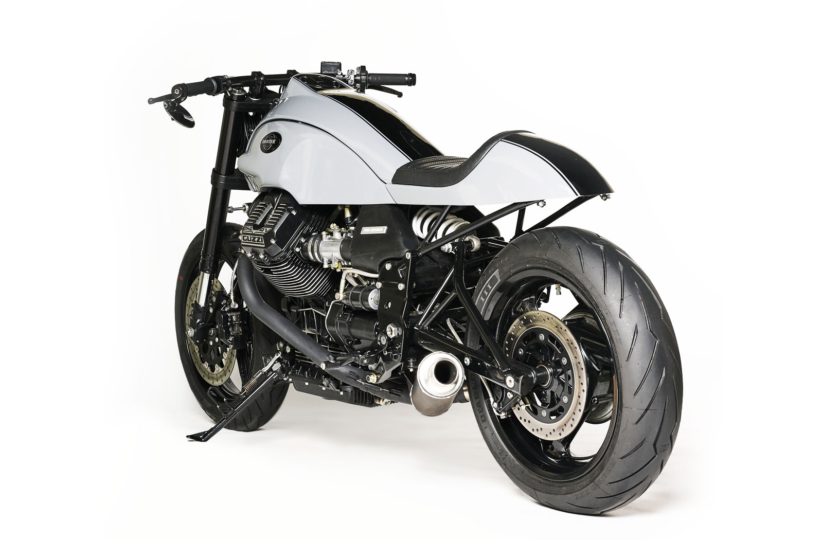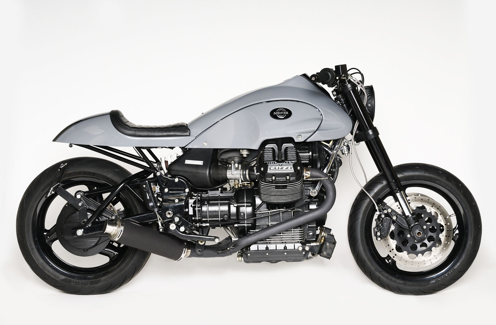 As they say “Excellence is in the details” and excellence is certainly what’s been achieved here. To complete this project Meister gave the entire engine a fresh coat of high-temp black before painstakingly polishing all of the fins on the engine cases. The front end of the frame has been chrome plated, the wheels refurbished and the bodywork finished in a sleek modern grey. Even the fuel injection badges that once sat on the side panels have been relocated to the airbox and a set of one-off Meister Engineering badges fabricated for the fuel tank. So despite once being an Italian oddball, this Moto Guzzi V10 Centauro has exceeded all our expectations.