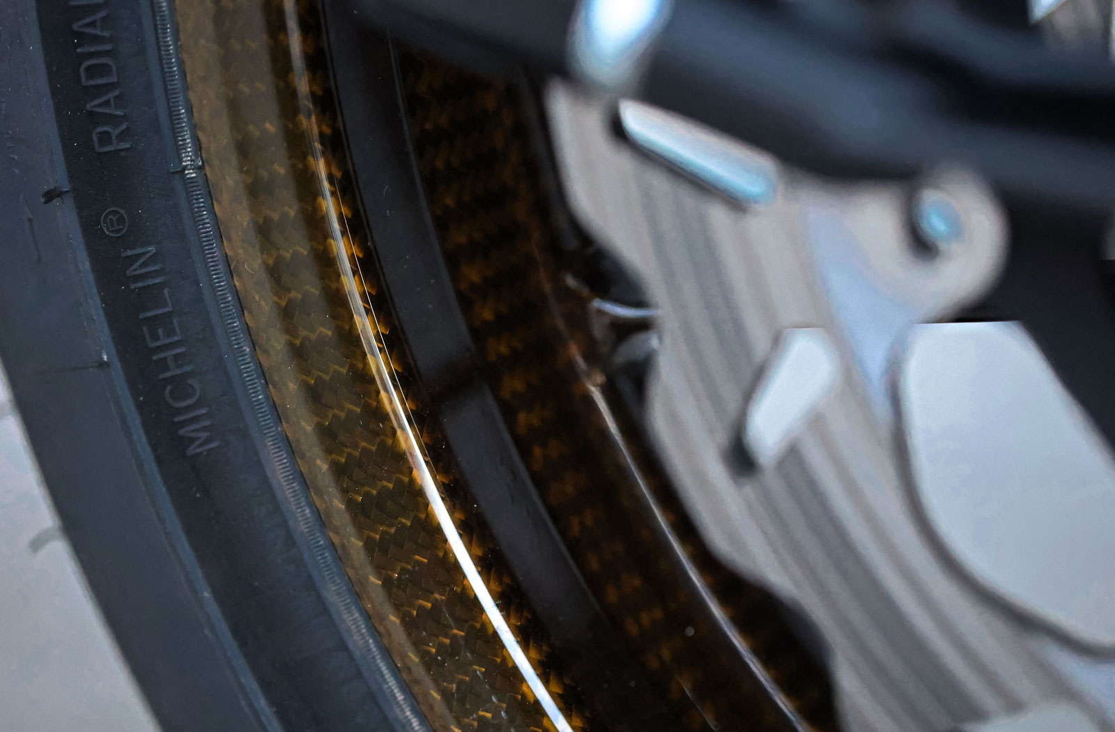 Slowing down isn’t something you want to disregard when drag racing and it certainly hasn’t been overlooked here. The custom brake package uses a single Brembo caliper at the rear and twin Beringer stoppers up front. The rotors are floating wave items by Galfer and the controls and reservoirs hail from Beringer. As if all that wasn’t enough Stefan has also reduced unsprung weight drastically with the fitment of Rotobox forged carbon ‘Bullet’ rims.