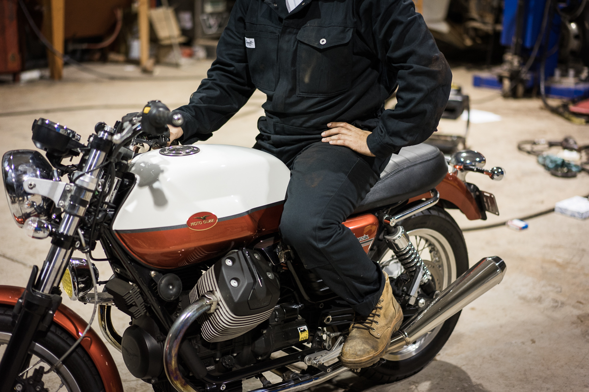 If you can imagine yourself blasting around the neighborhood on your project bike on a shakedown ride then I have great news for you. These overalls are fantastic to ride in! Joel assured me that I’d love them on the bike and he was 100% right. They are weightless on the shoulders and there’s enough room in the arms to reach the bars without them riding up. The waist is comfortable and there’s room plenty in the legs, from calf to quad. Pretty good considering this is workwear, not rider wear.