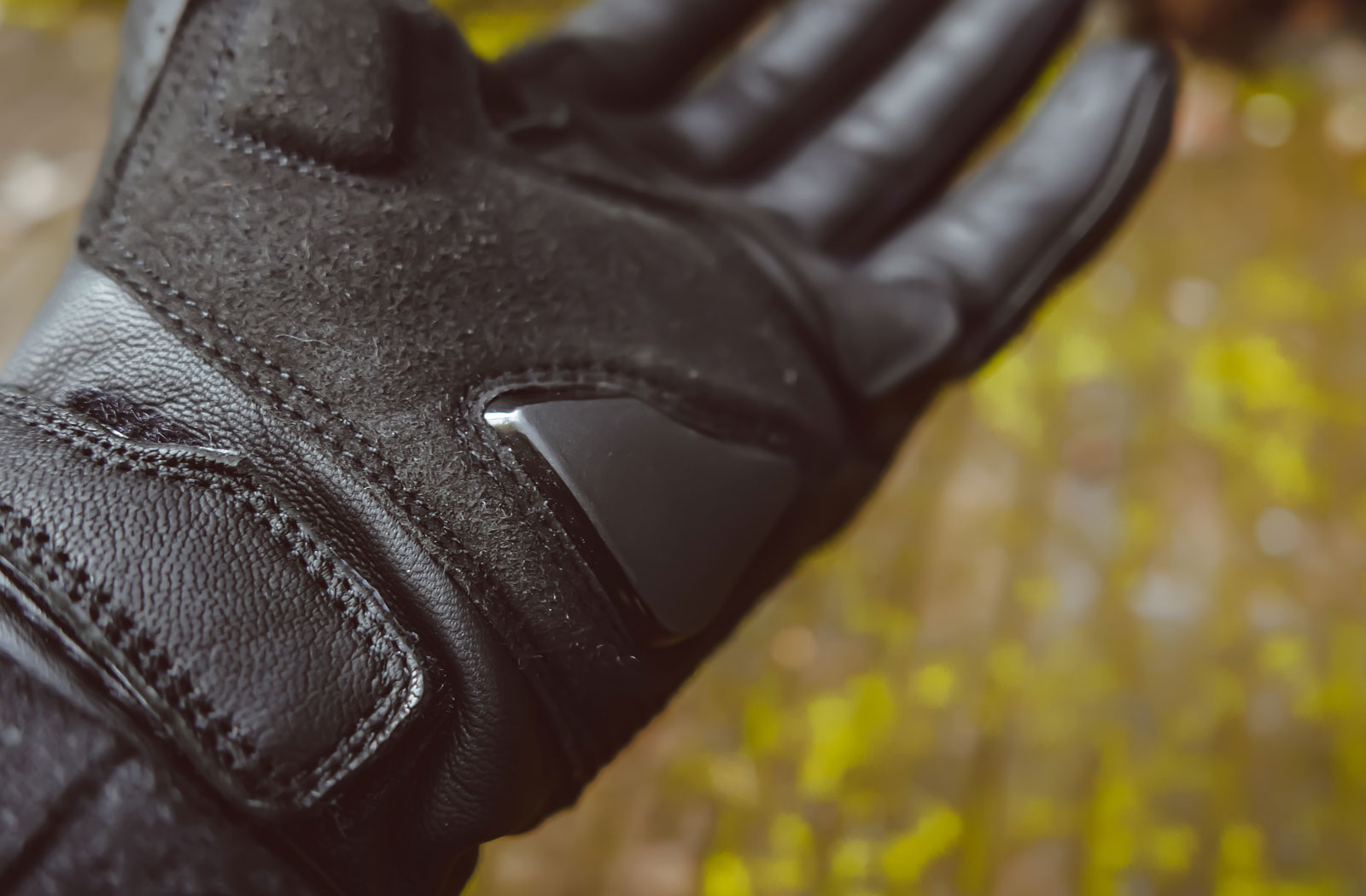 Along with the use of leather, Pando Moto has added impact protection into the design of the Onyx Black 01 gloves. Along the top of each finger are raised, pill-shaped details that contain padding. Protecting your knuckles against hard knocks is a TPU armour which offers enough flex to not be uncomfortable. There is also an additional TPU panel at the base of the thumb on the palm that cushions your hands where they sits on the grips.