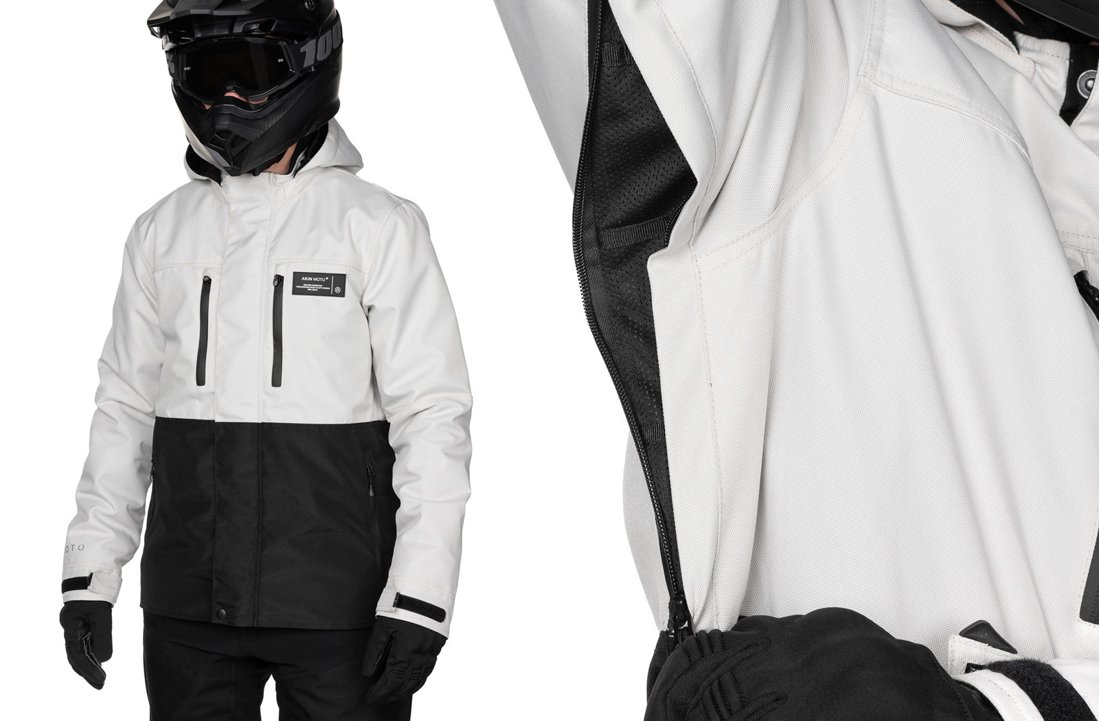 Akin has also fine-tuned the fit of the Alpha 4.0. Since acquiring the jacket, I found the fit to be snug on the inside but loose-looking on the outside. The two-way main zipper is a big plus for those with more aggressive riding positions too since it prevents bunching around the waist. The sleeves and liner did a great job at keeping me warm with only a mid-weight sweater underneath and the velcro on the cuff meant I could wear either gauntlet or short cuff gloves comfortably. The ventilation system also works great with the openings on the chest and armpits letting plenty of air in. The Alpha comes in either an all-black or black-white finish. I went with the latter because of the extra visibility it offers in inclement riding conditions.