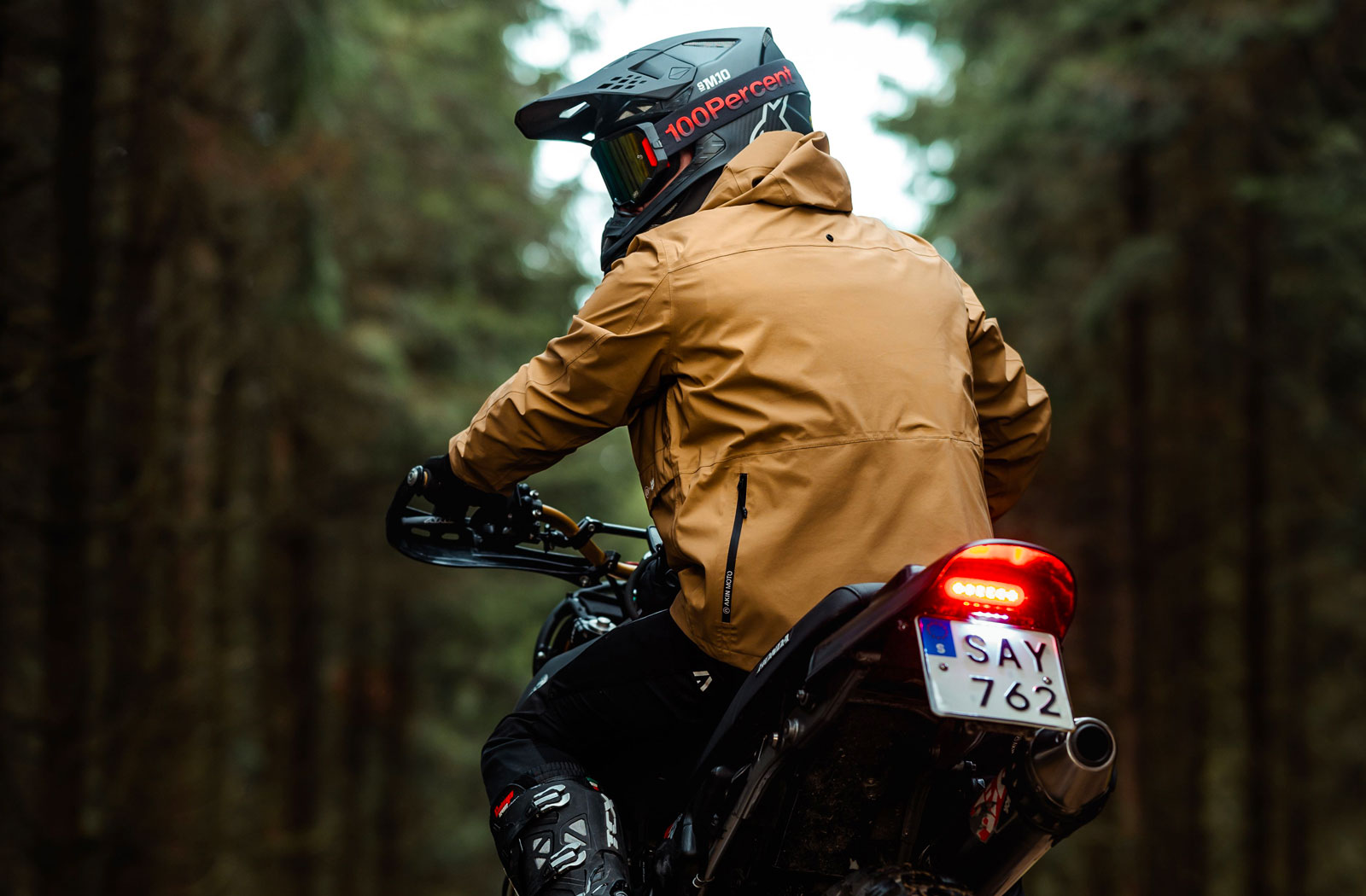 The Akin Moto x Gorm Moto Anorak is a hyper-versatile jacket designed to simplify the challenges of riding in the wet. At the forefront of the design is the Anorak’s versatility. Designed to be easily packable, the Anorak folds into itself to form a neat bundle that can be easily stowed in a backpack or moto luggage. Worn as an over layer it can be fitted over a helmet thanks to a pair of waterproof zippers on the neck. Additionally, the boxy cut and stretch fabric mean it can be comfortably worn over your other riding gear without restricting your movement.