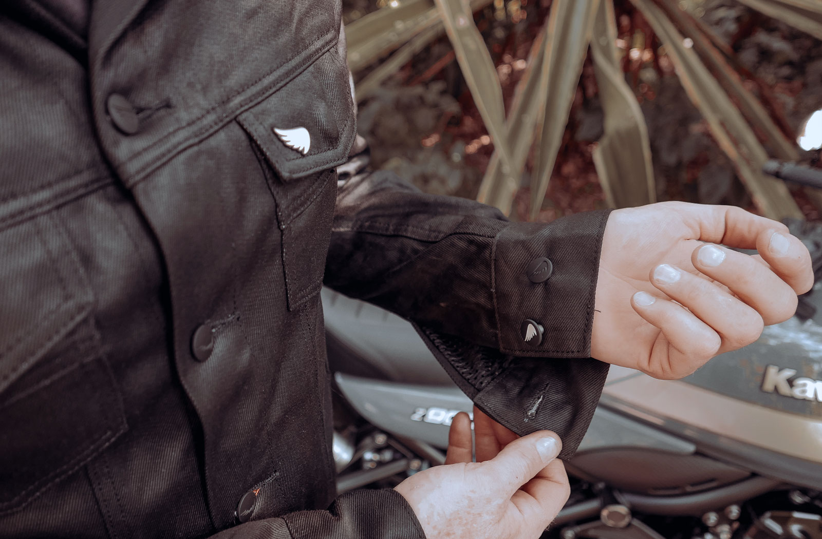Due to the characteristics of the Unbreakable denim and the lack of a wind flap behind the main closure this riding jacket is best suited to Summer/Spring riding. As I’ve mentioned in other Saint gear reviews the UHMWPE lined denim feels cool to the touch. It also cools well when there’s a breeze so despite the black finish you’re not going to cook on a hot summer’s day.