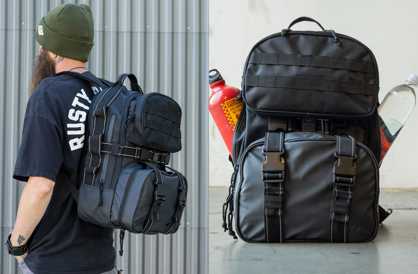 The Biltwell EXFIL 48 is the brand’s go-to motorcyclist backpack solution. The backpack offers 34 litres of storage space (or up to 48 12-ounce beer cans). It’s ideal for daily commutes but also offers enough storage for a weekend getaway. One of this bag’s stand out features is its ability to be mounted to a motorcycle without additional straps or hardware. The compression straps that form part of the bags basic design can be reversed to wrap around a sissy bar or seat to secure it in place.