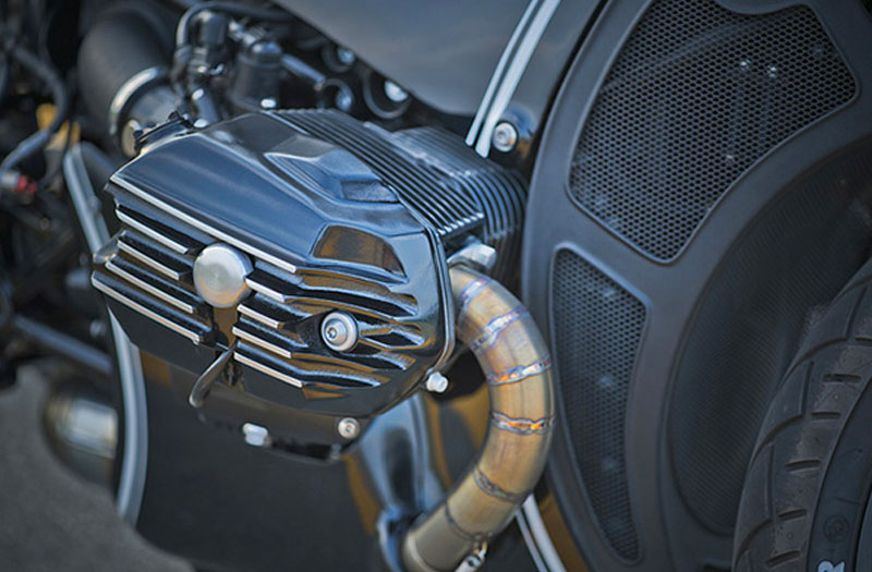 Concealing the R nine T’s modern radiator is a mesh panelled cowl. The rest of the Boxer twin aside from its horizontally opposed cylinders is also hidden out of sight by the new bodywork. The rear end features a Honda CR750 style cowl and the fuel tank is a cover that sits over a concealed fuel cell.