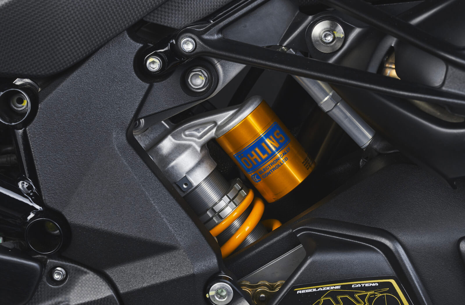 Stopping power comes courtesy of Brembo with twin Stylema radial 4-piston calipers clamping down on 320mm floating discs up front and a Brembo 2-piston unit on a 220 mm disc at the rear. There is, of course, an ABS system in the form of a Continental MK100 that offers rear wheel lift mitigation and a cornering function too. Specially designed forged alloy wheels help keep unsprung weight to a minimum and they’re wrapped in premium Pirelli Diablo Supercorsa rubber.