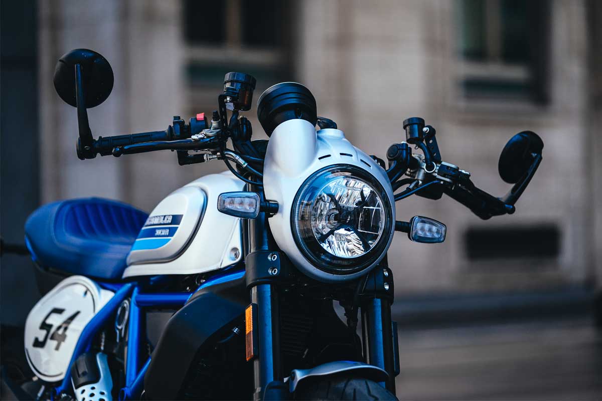 2. Components: The component category refers to purposeful parts on the bike that are synonymous with cafe racer styling and performance. These include things like clip-on handlebars, rear-set footpegs, tail sections, retro cowls etc.