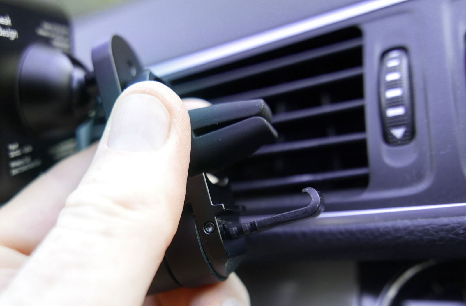 The Peak Design Car Vent Mount is a very clever bit of kit. There are plenty of similar mounts on the market, but what makes this one a standout is the locking mechanism that secures it in place. Basically, there’s a hook and a rubber ‘duck bill’ style clip. To install the unit you wind the hook out then insert it into the vent and over the back of a vent blade. At the same time, push the rubber clip onto one of the vent blades.  You then tighten the hook which pulls the unit onto the vent blades and locks it in place. Once that’s done no mount of tugging, speed humps or off-road driving will dislodge it. However, unlike the motorcycle mount, the Car Vent Mount doesn’t use the SlimLink locking system. Instead, it holds the phone in place using just the magnets. These are nice and strong so it’s unlikely the phone will fall off, but if you are planning on doing any serious 4WD activity it would likely come unstuck.