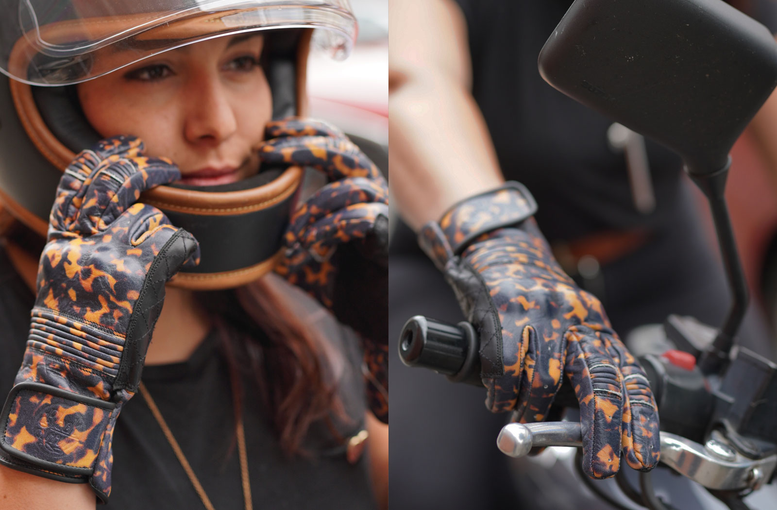 Specifically designed for women’s hands, these gloves are just for the ladies! 100% leather outer, longer wrist length, and lined! Black Arrow’s Queen Bee Tortoiseshell gloves are without question the most gorgeous moto gloves on the market.