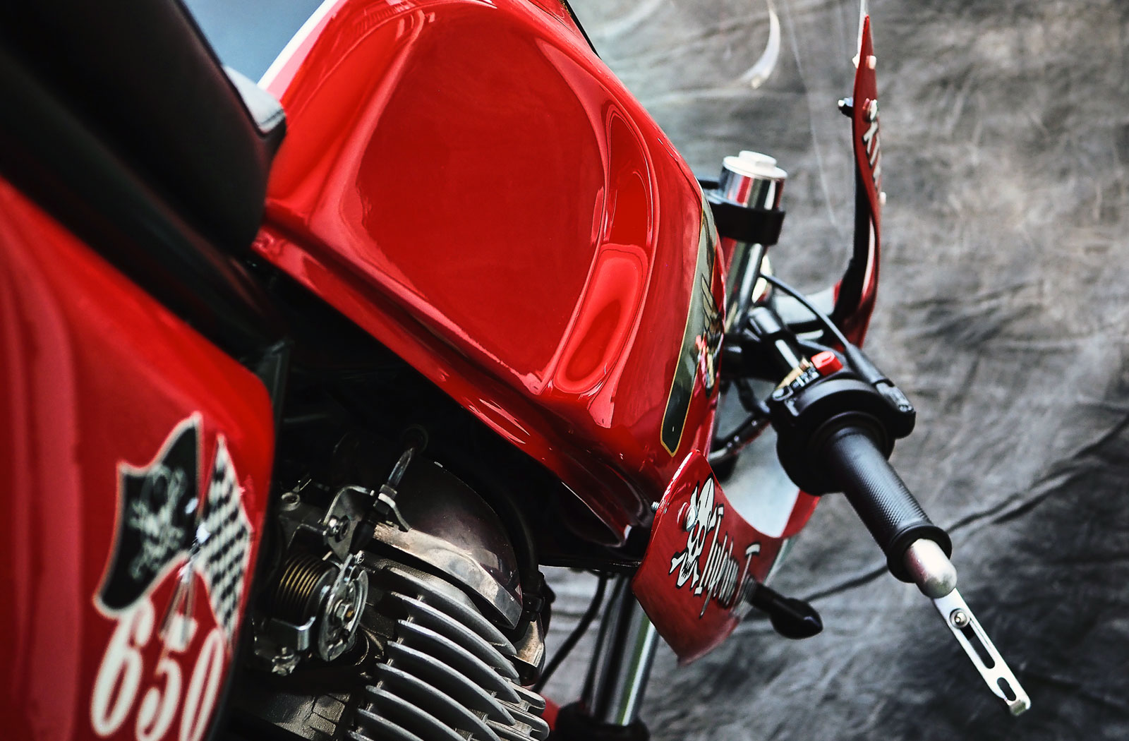 “To make a race bike with two seats is really hard without ruining the image of a sporty bike,” Pepo explains. “But I remembered the Italian bikes of my youth and discovered a solution for this challenge. It was the Moto Morini Sport 350 and Guzzi Le Mans I that inspired me the most.”