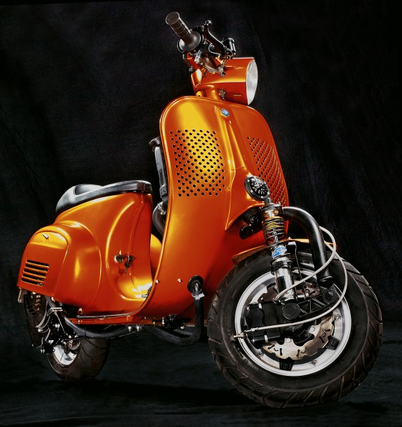 Starting out with a base model which would have been lucky to produce 10hp the S&S team have increased power output by more than 300% to 31hp at the rear wheel. To achieve this they used the cylinder from an Aprilia RS125 bored to 57mm, a 54mm stroke Mazzucchelli crank, 35mm PWK Keihin carb and one of their custom made performance exhausts. To cope with the extra power the Vespas handling has been improved with a Malossi/Bitubo shock set up and the rear brakes are fully hydraulic 4 piston radials in the rear and an S&S custom disc set up at the front.