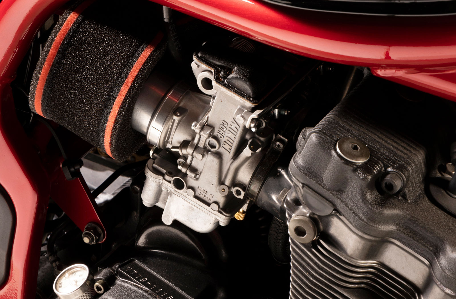 For the electrics, we made a new wiring harness and swapped out the old electrics and relays with a Motogadget M-unit. There’s also a Motogadget Chrono Classic speedo which adds a premium detail to the overall finish. A keyless Mo.lock ignition completes the list of Motogadget upgrades.