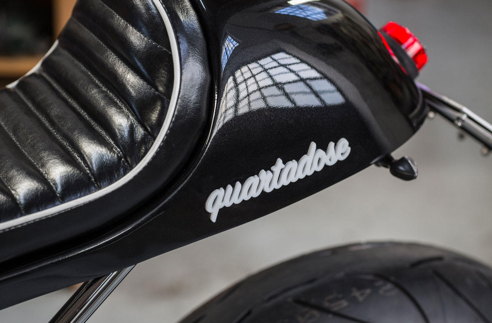 Nicknamed ‘Quarter Dose’ Nicolai’s goal was to commemorate 1960s cafe racer style. The result is a stark contrast to Suzuki’s chunky 1980s design and despite the wide inline-four and boxed aluminum frame, he’s somehow pulled it off.