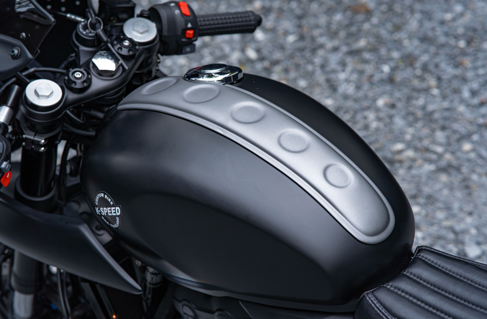 Eak has taken a stock 2024 Triumph Speed 400 roadster and transformed it into a sinister, head-turning cafe racer. The project took around 50 days to complete and was a personal build for Eak and his team. By taking this approach K-Speed are able to familiarise itself with these new models and begin the process of developing aftermarket parts to offer its customers.