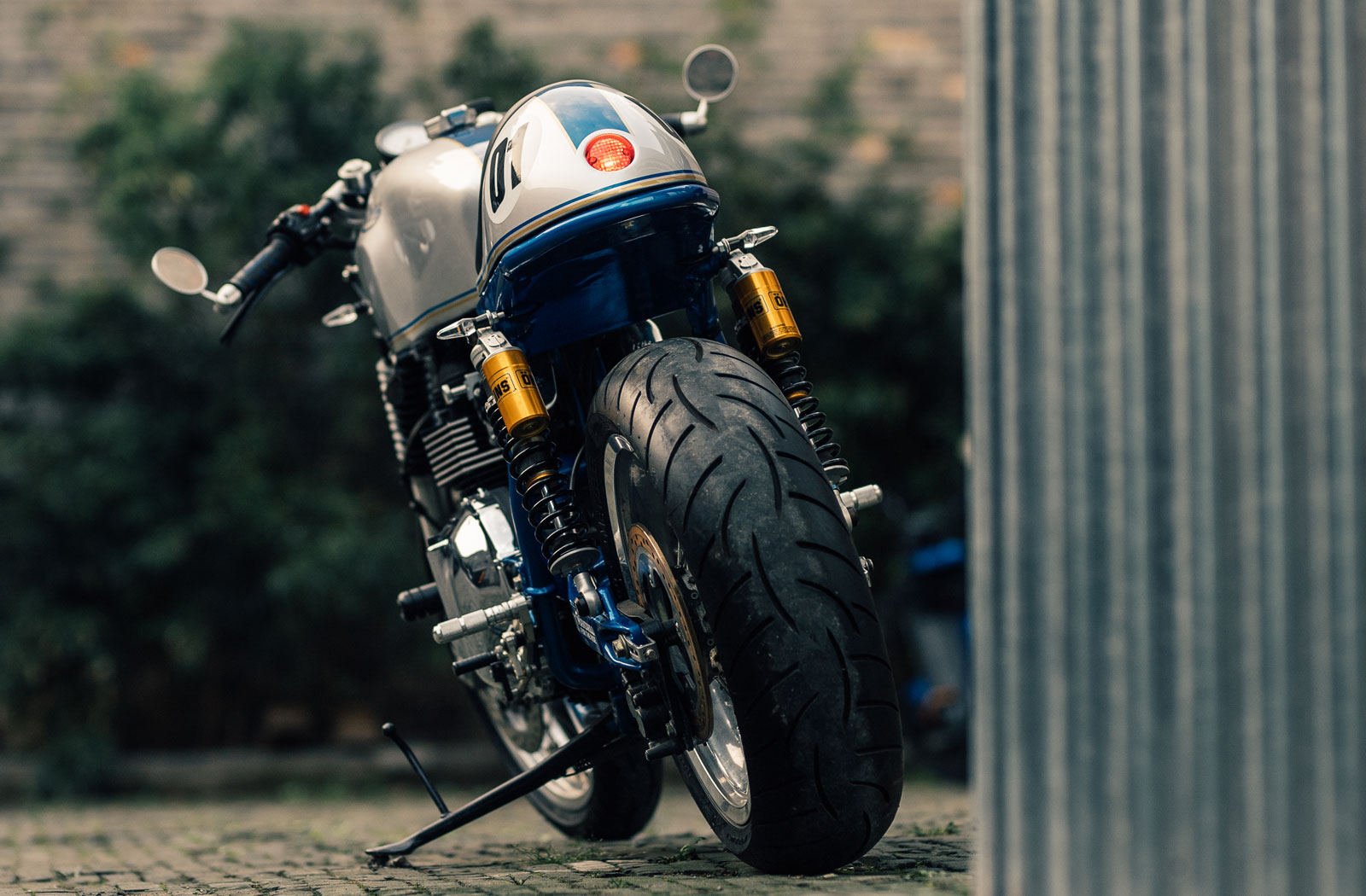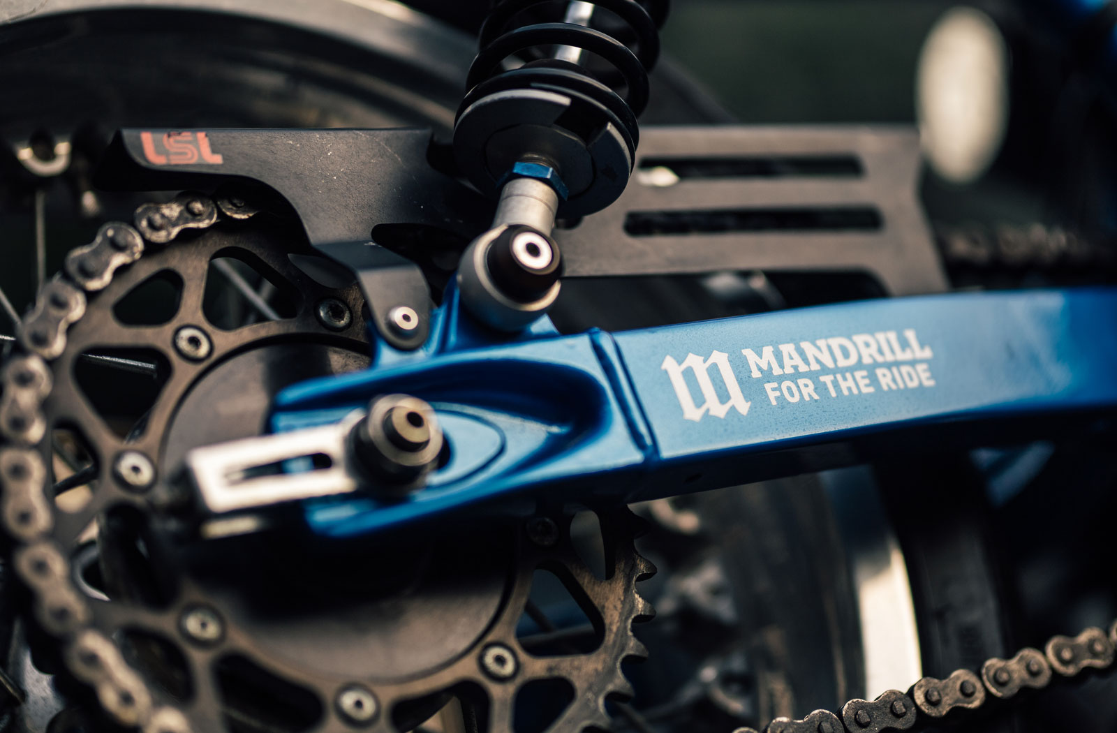 In the rear, the changes are more obvious. Mandrill has installed a set of piggyback Ohlins shocks which lift the rear end slightly to level things out.