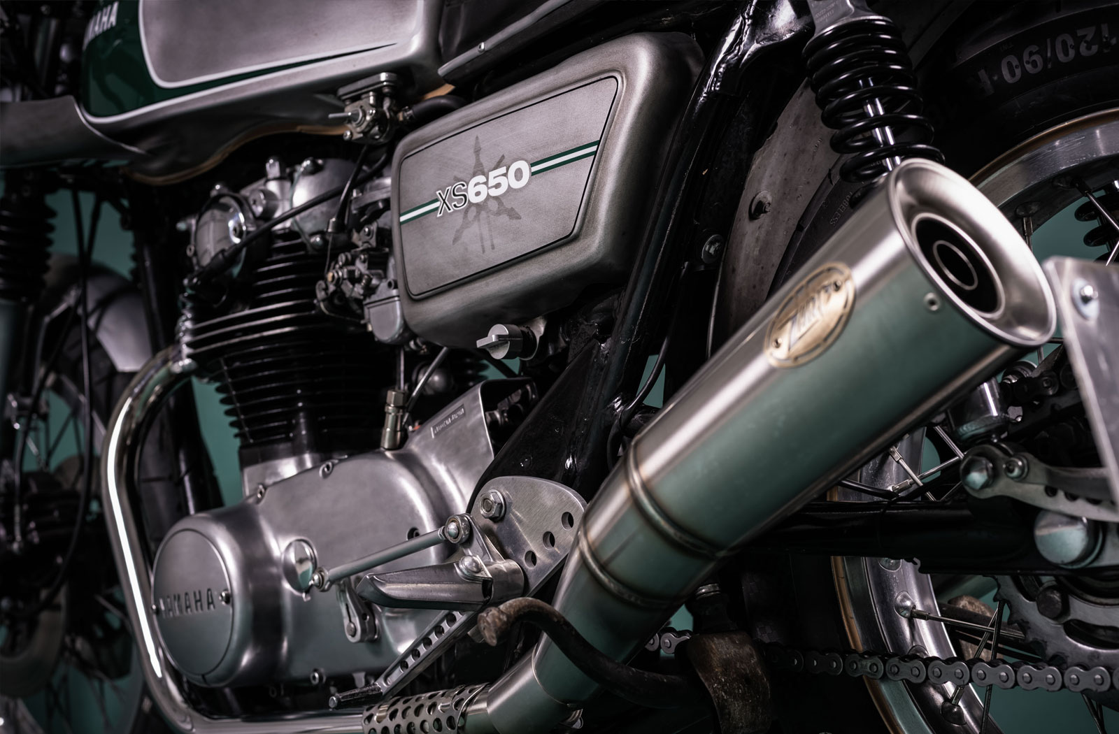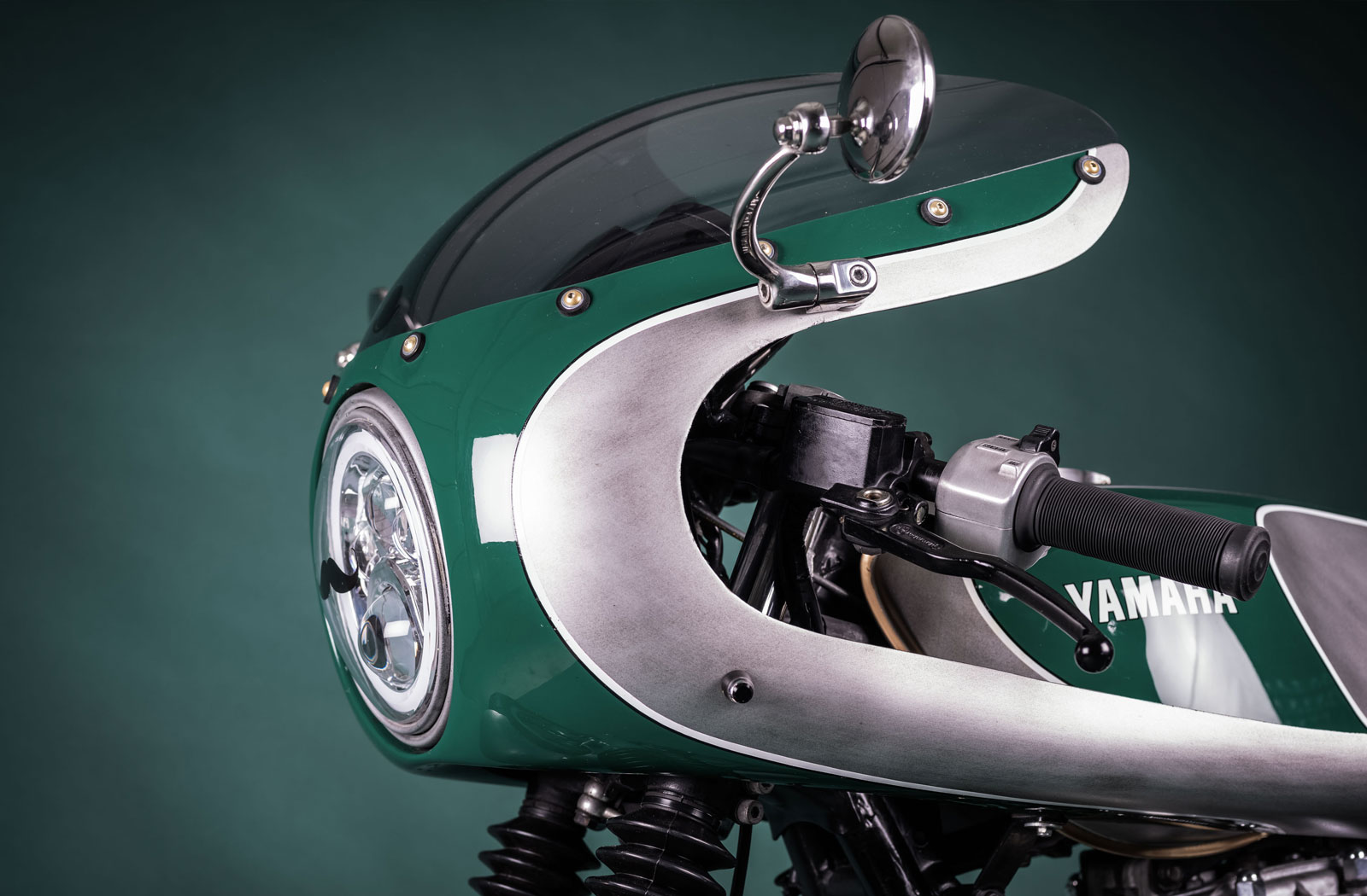 When it came to choosing a paint scheme for this project, Ace kept it simple. To match the look of the engine they’ve opted to keep some areas of the bodywork bare. The stripped panels have been given a light brush to add some texture prior to a lick of clear coat for longevity. To complete the look the rest of the body wears befitting British Racing Green paint bordered with white pinstripes. Period-correct Yamaha and XS650 emblems and ghosted tuning fork emblems complete the look.
